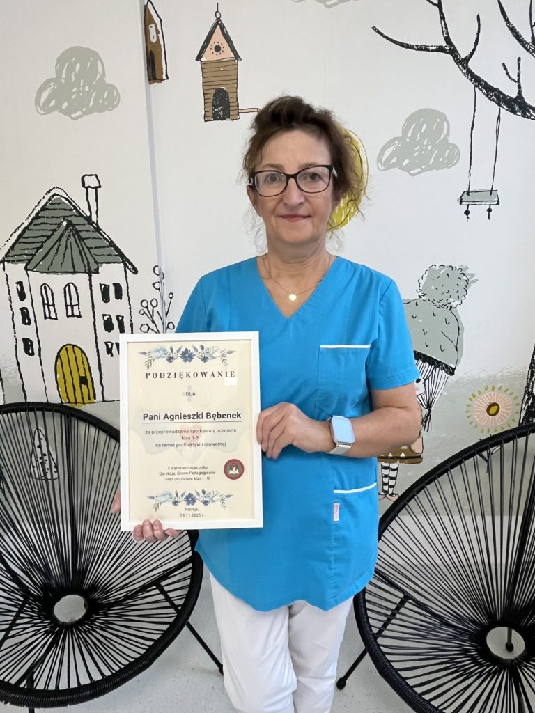 Dziękujemy PSP im. Przyjaciół Dzieci w Przytyku za możliwość przeprowadzenia prelekcji dla uczniów o profilaktyce zdrowotnej, o której należy mówić od najmłodszych lat. Pani Agnieszka Bębenek otrzymała podziękowanie od dzieci, za które serdecznie dziękujemy.